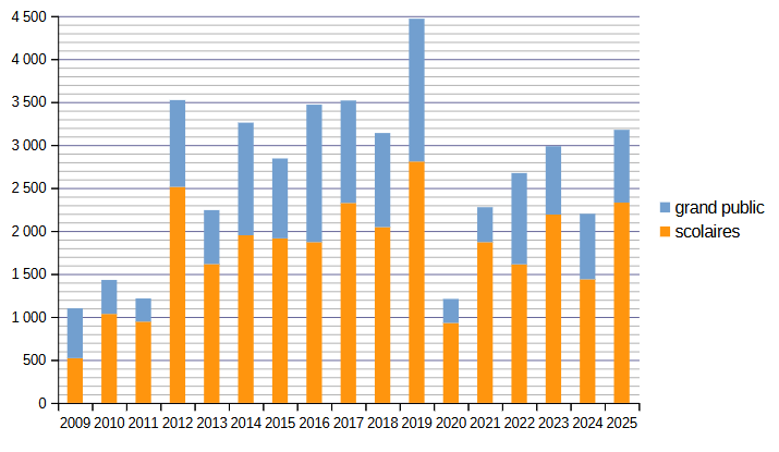 Le "public scolaire" inclut les écoles primaires, les collèges, les lycées et les centres aérés.